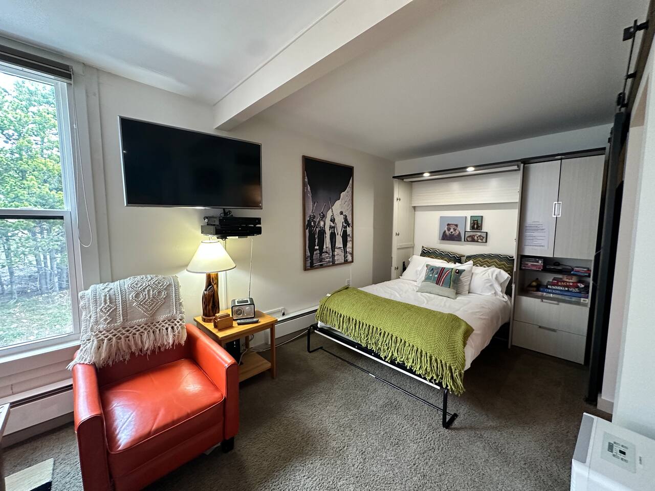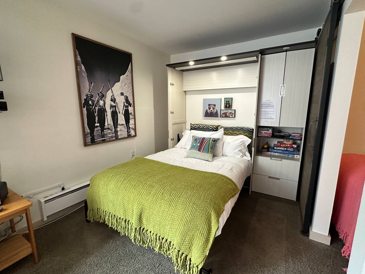 ✹ 1 bedroom; 1 Queen, 1 full-sized Murphy bed