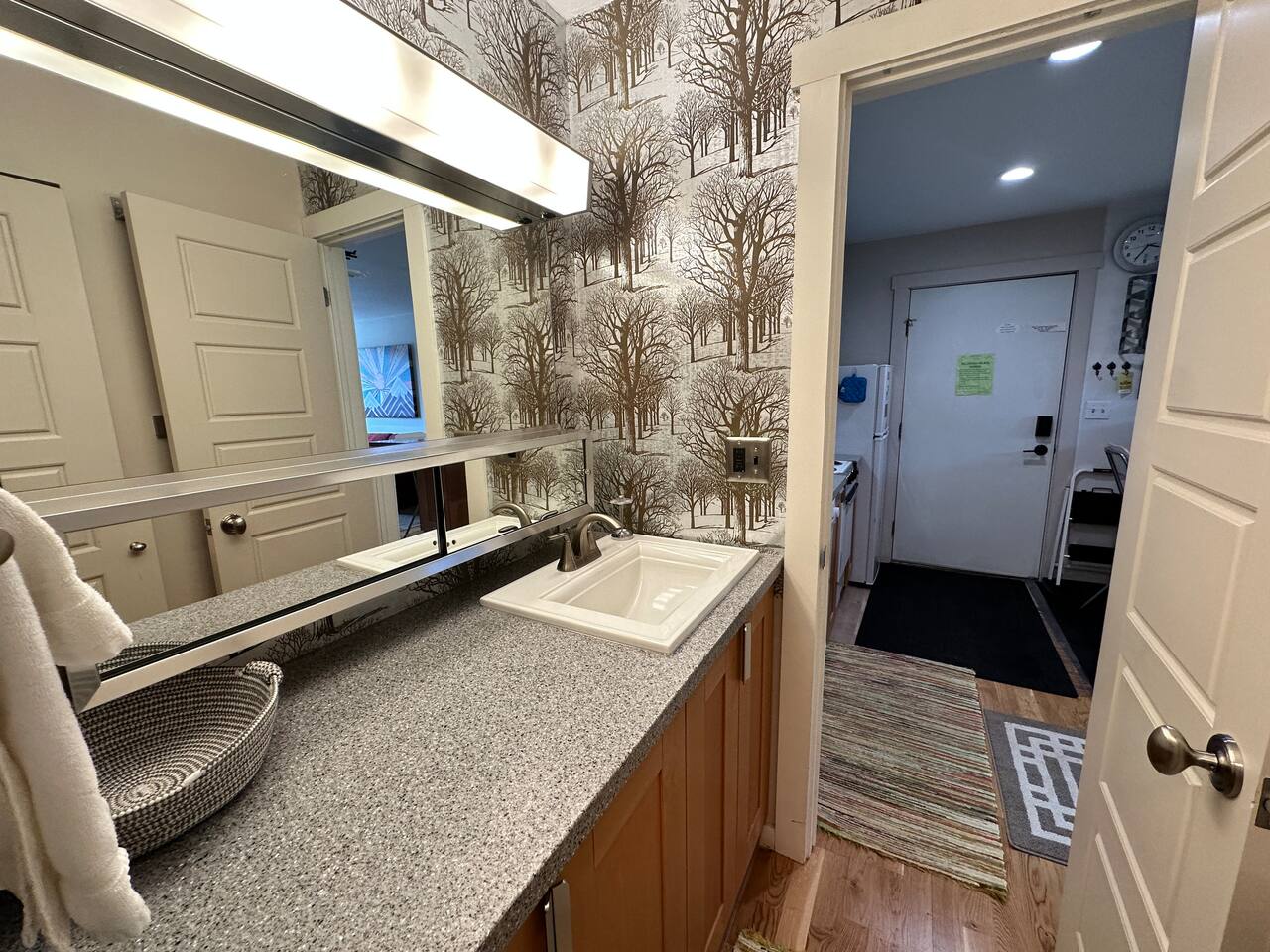 ✹ Bathroom 1 (ensuite to the primary bedroom): single vanity, shower, tub