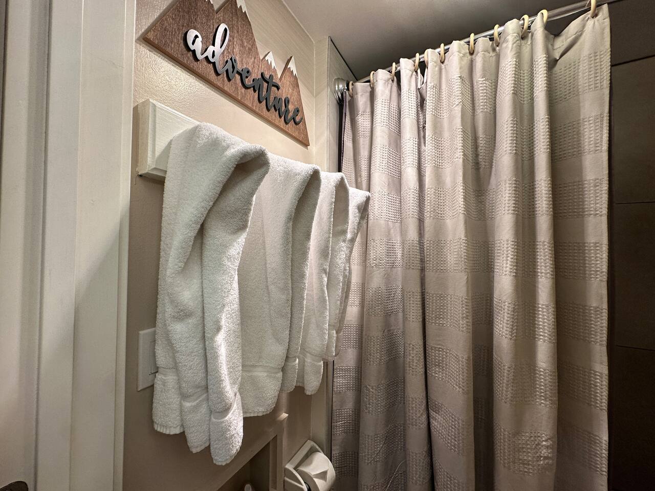 You’ll find 1 full bathroom to provide ample space for everyone to get ready. The bathroom features shampoo, conditioner, and body wash, so you don’t have to worry about bringing your own.