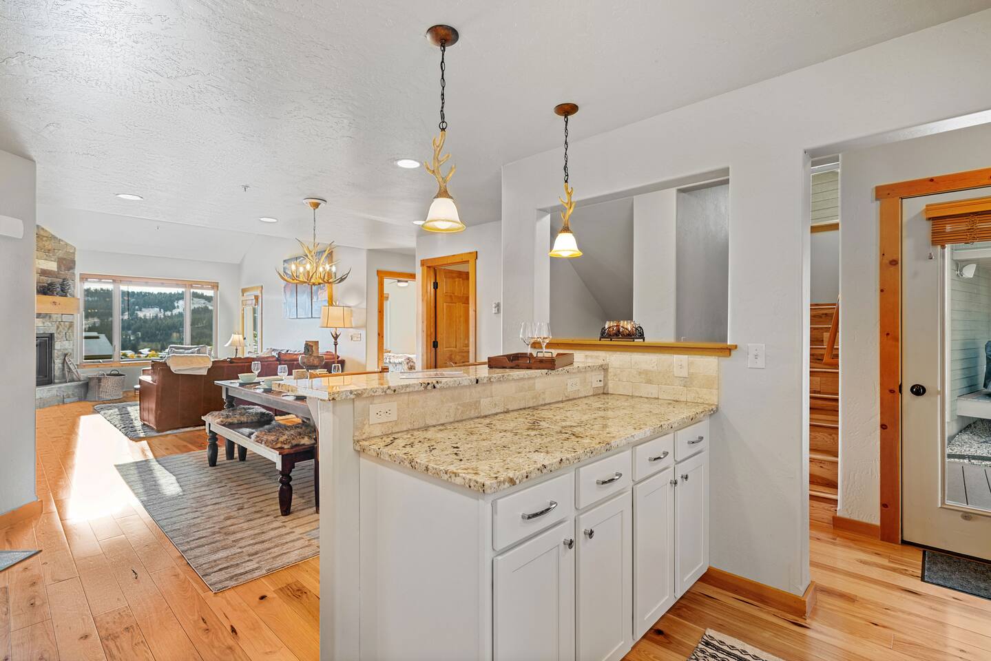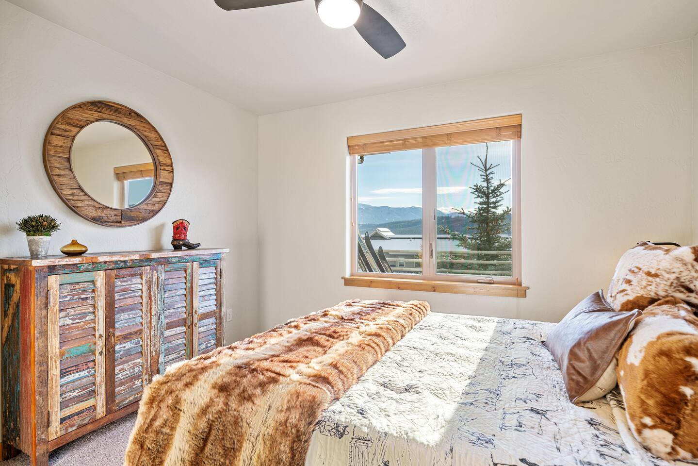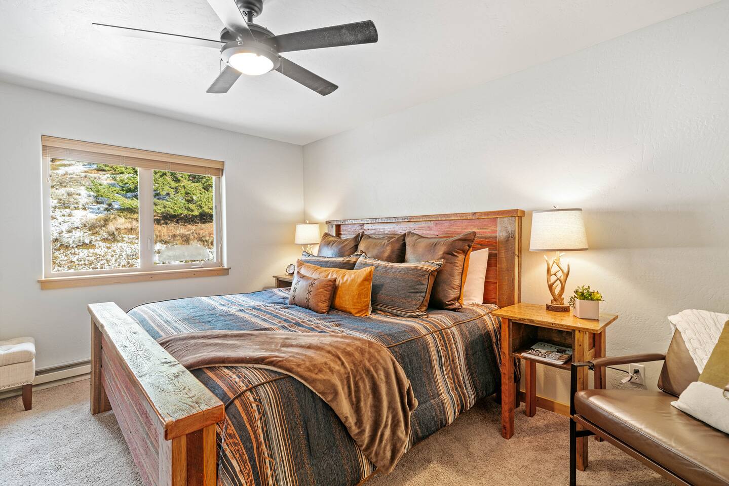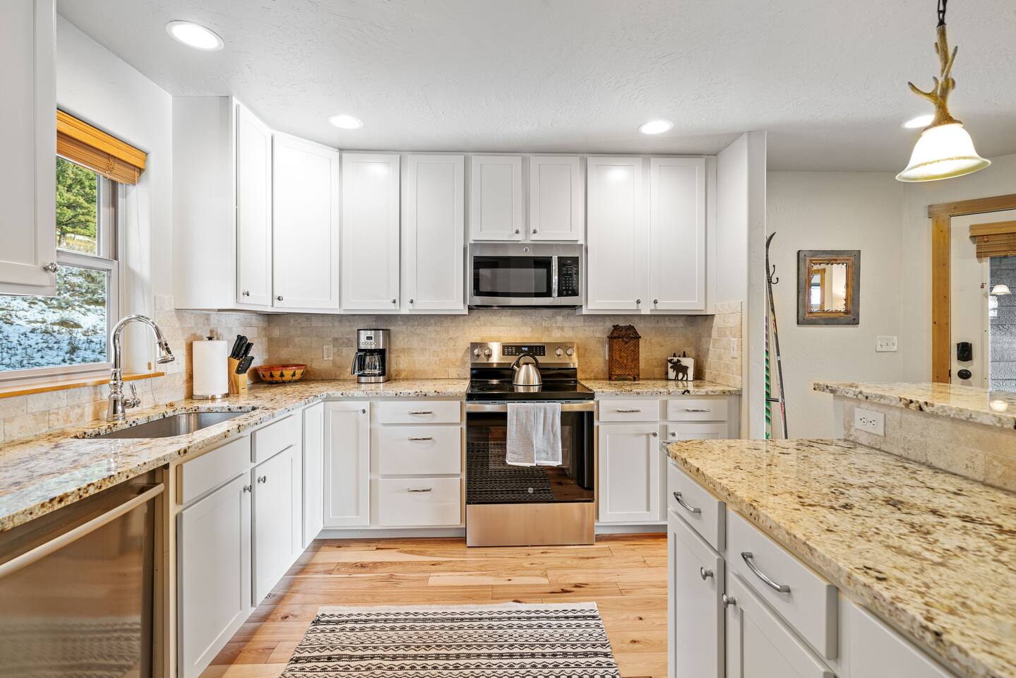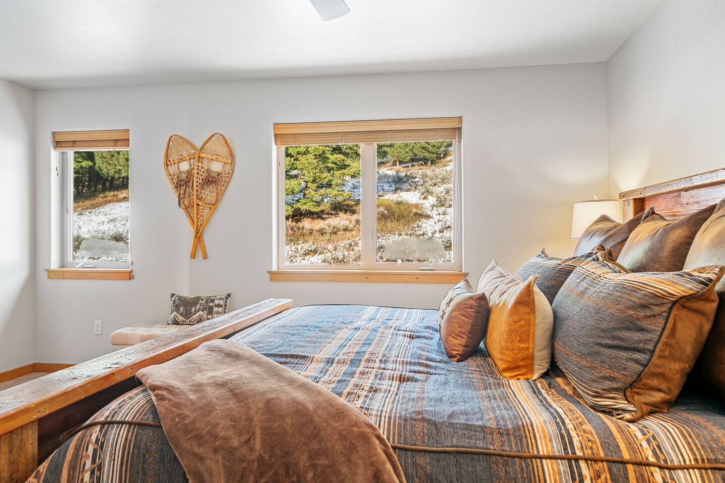✔ Large windows, high ceilings + charming cabin décor