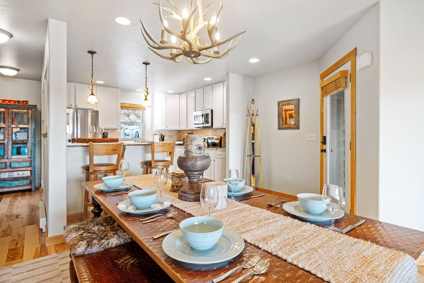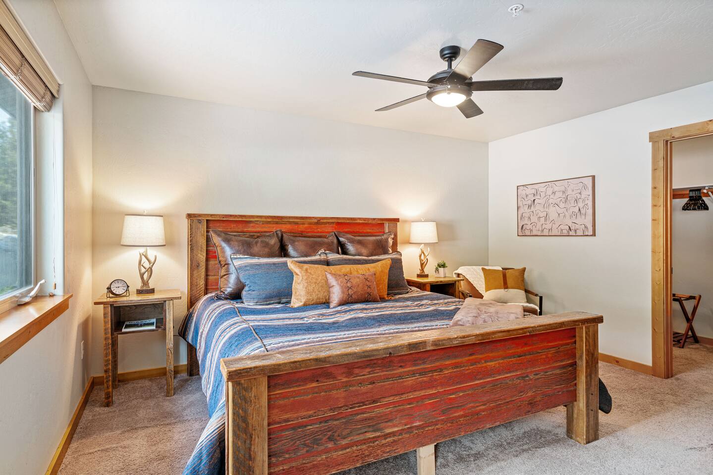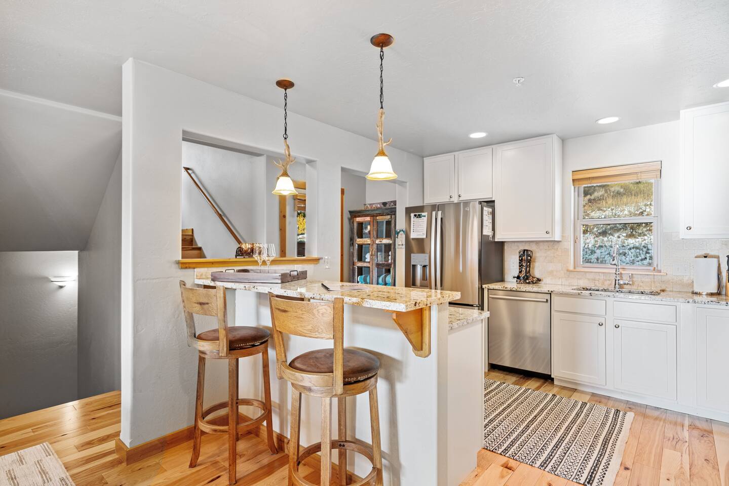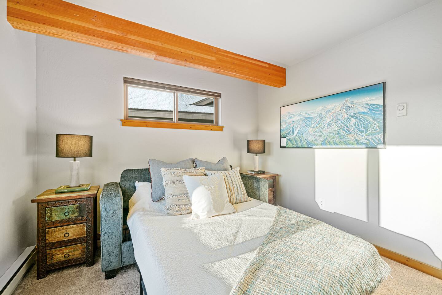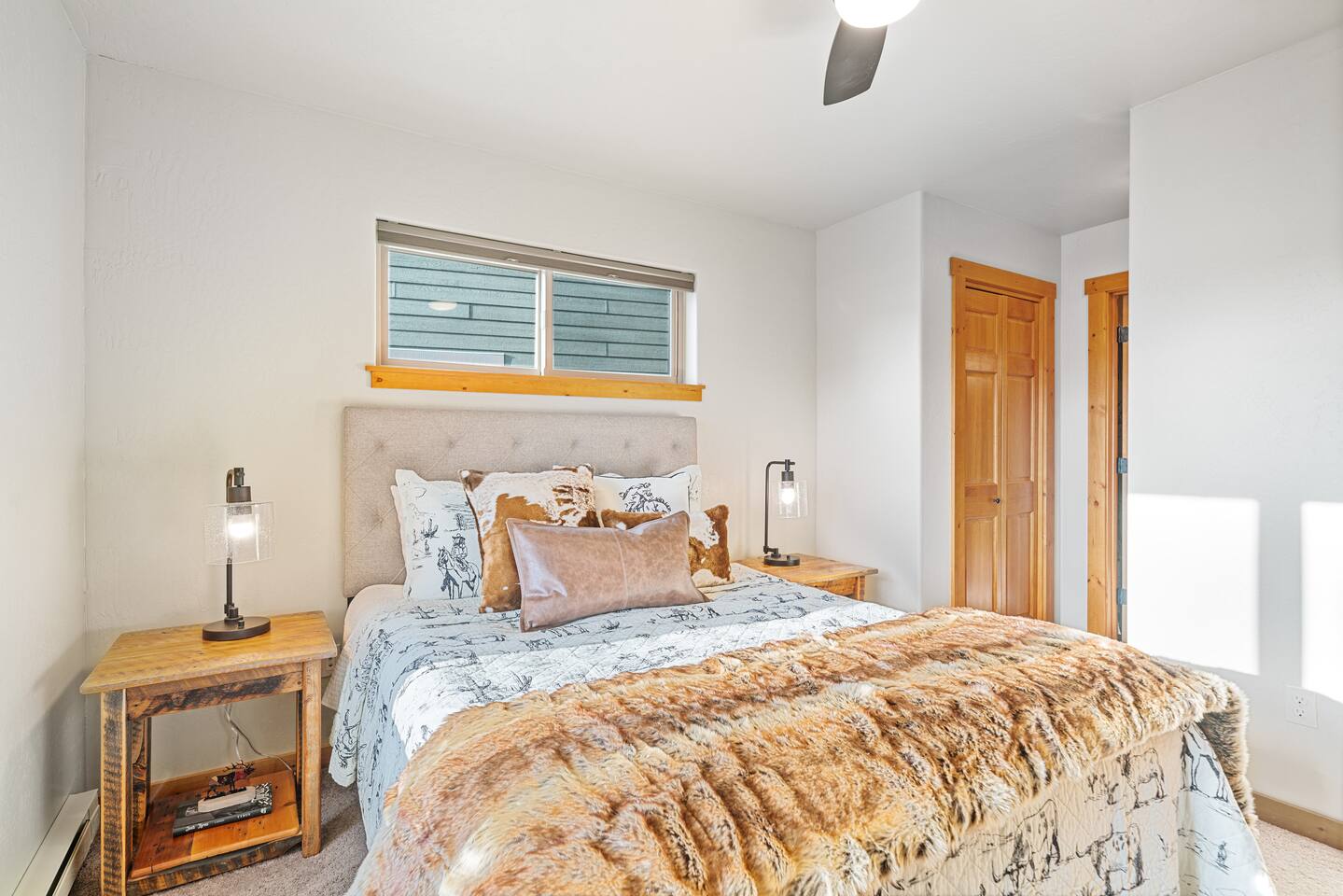 ✔ Large windows, high ceilings + charming cabin décor
