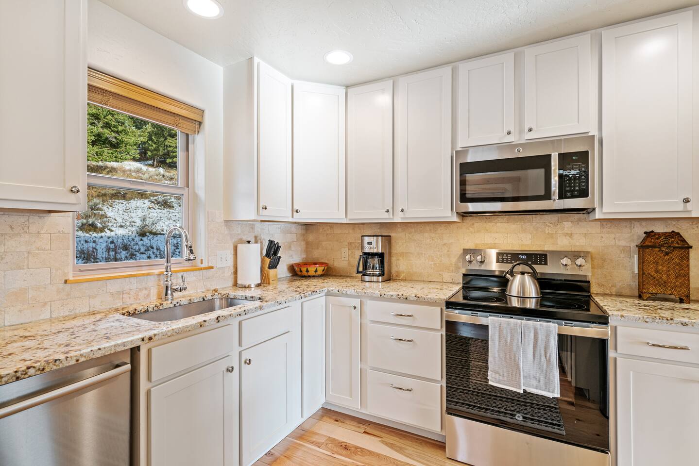 ✔ Stove, oven, dishwasher, microwave