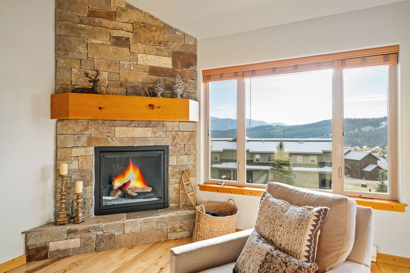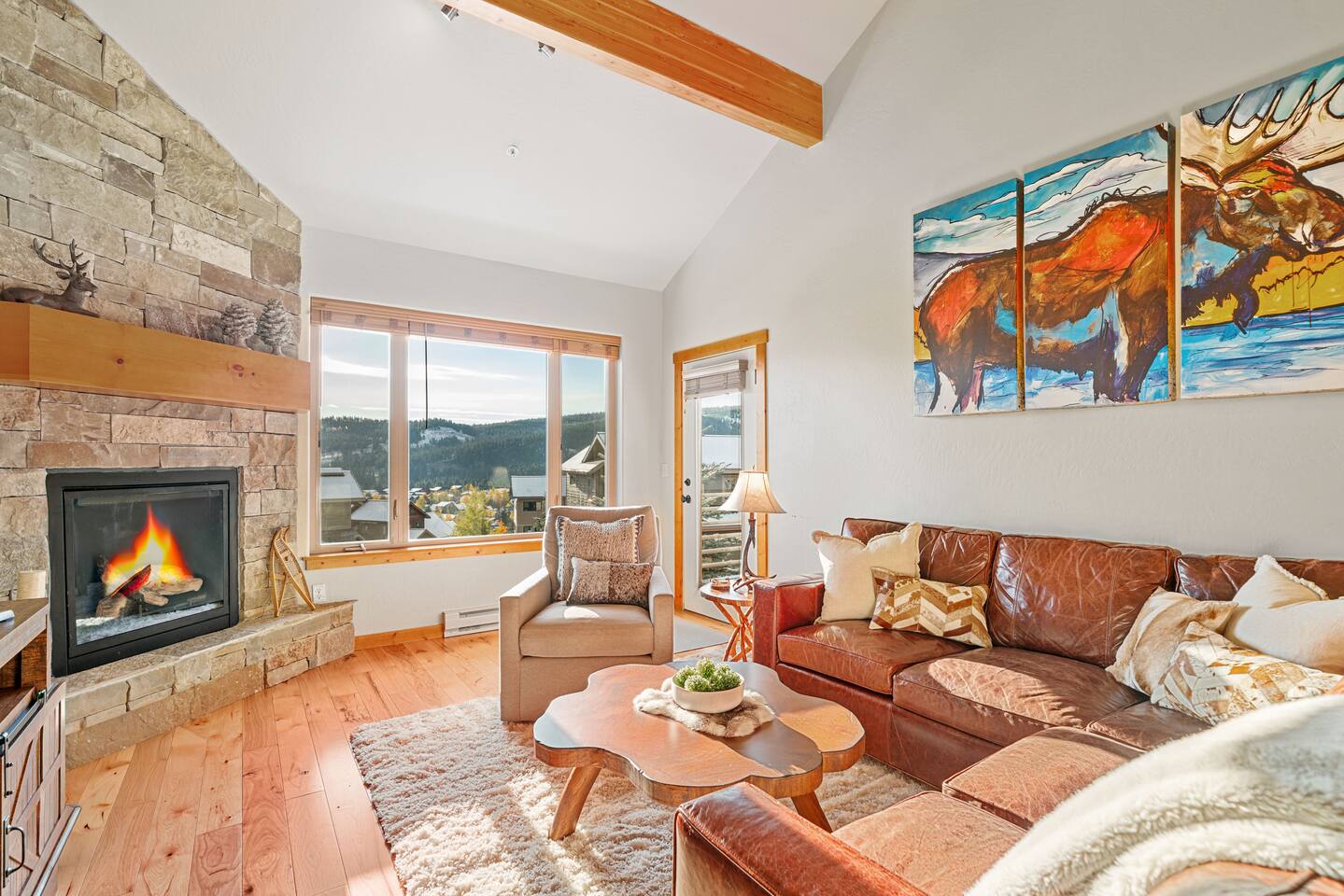 Welcome to your Montana escape! This cozy town center condo offers stunning Big Sky views in every direction, with Moose and Elk often wandering by.