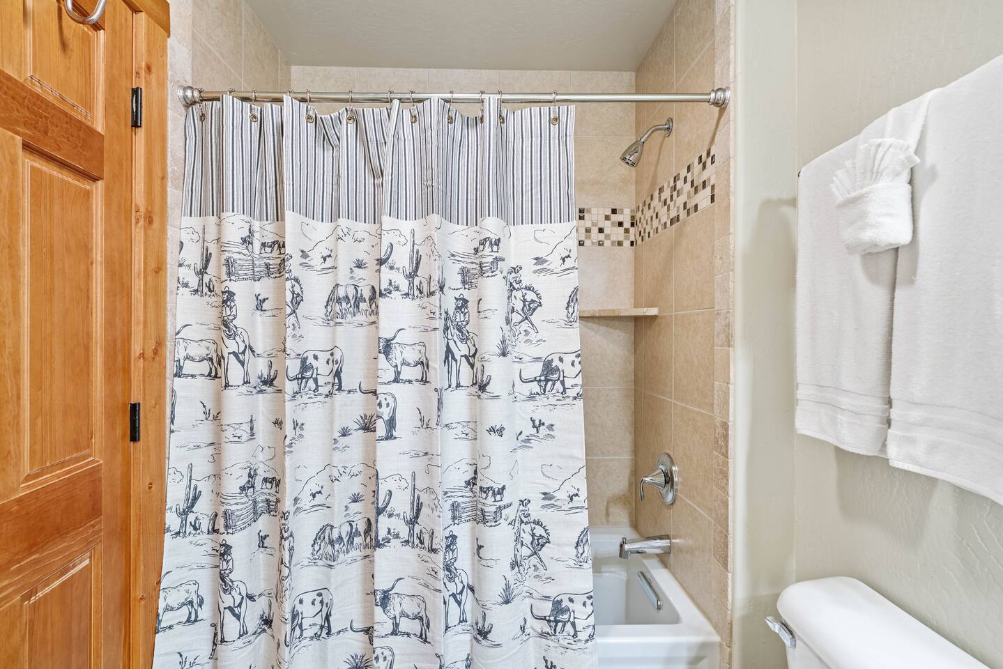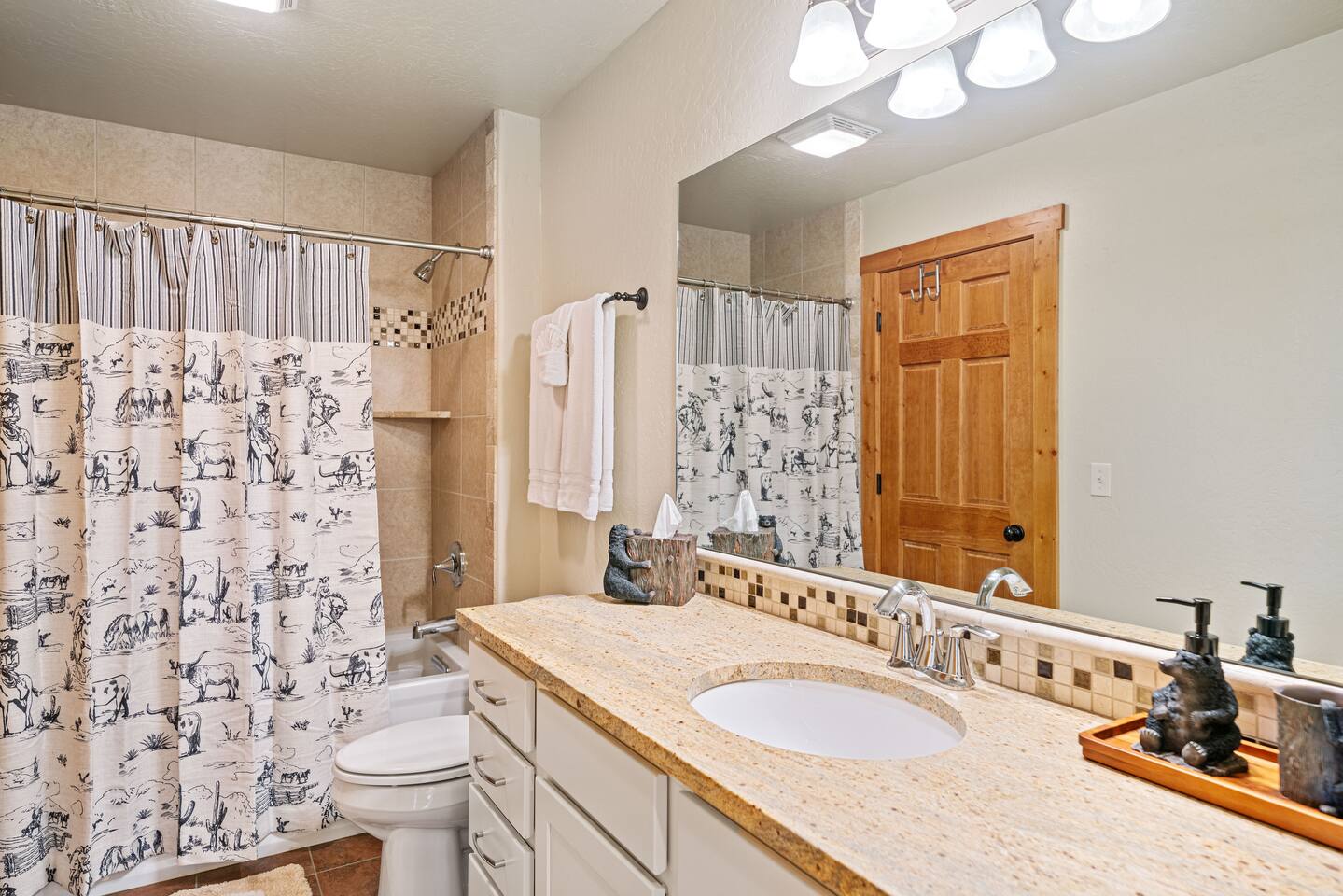 You’ll find 3 full bathrooms to provide ample space for everyone to get ready. Each bathroom features shampoo, conditioner, and body wash, so you don’t have to worry about bringing your own.