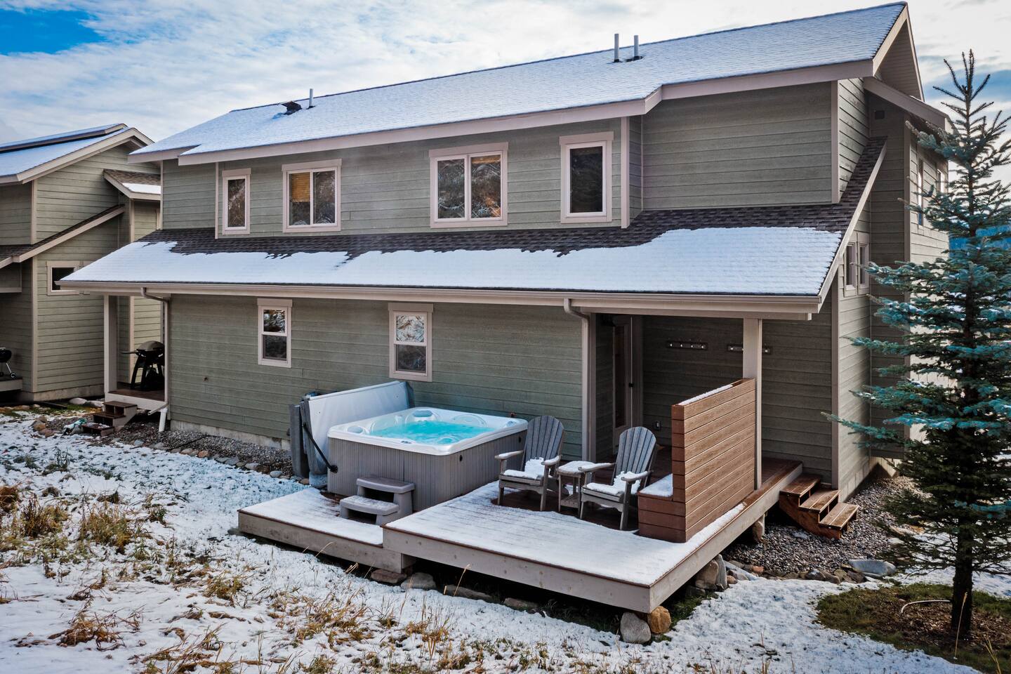 Relax in the private hot tub after a day of adventure. Located in Town Center and 10 minutes from Big Sky Resort—perfect for skiing, hiking, fishing, and more. Yellowstone’s wonders are an easy drive away.