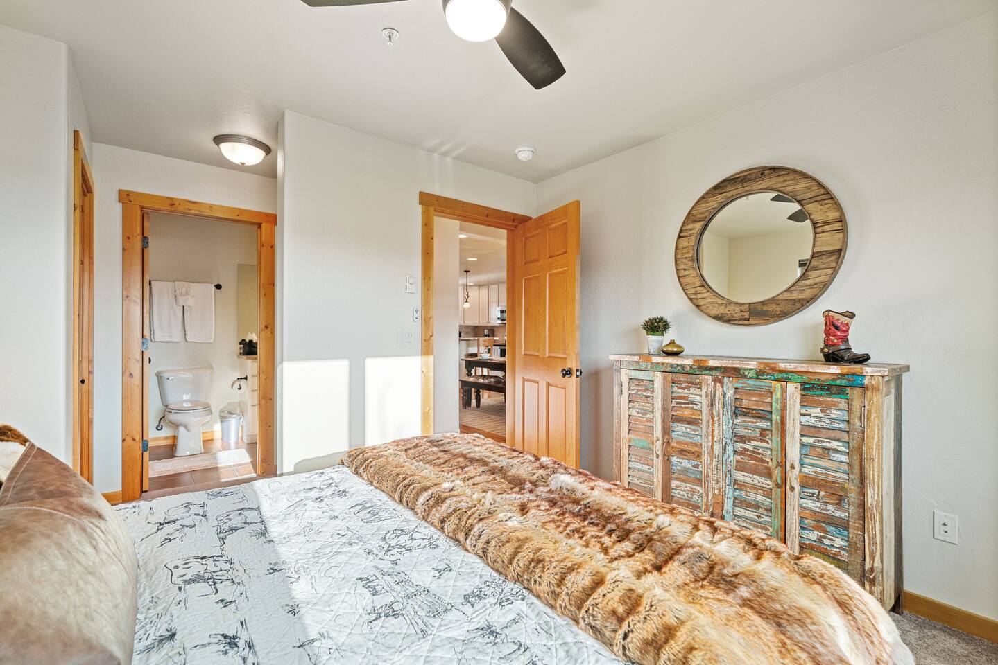 The luxurious furnished bedrooms are perfect for relaxing after a beautiful day taking in the classic Montana mountains. You’ll love the seamless combination of mountain charm and plush relaxation.