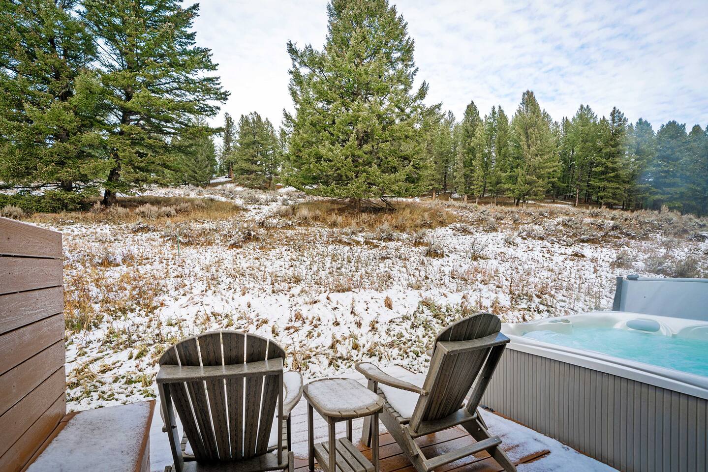 Enjoy some fresh air on our outdoor deck! Experience a true Montana experience while trying to spot some of the local wildlife. If you’re visiting in the summer, take in the views from our comfortable Adirondeck chairs. Staying during the colder months? Warm up in the private hot tub with incredible mountain views.