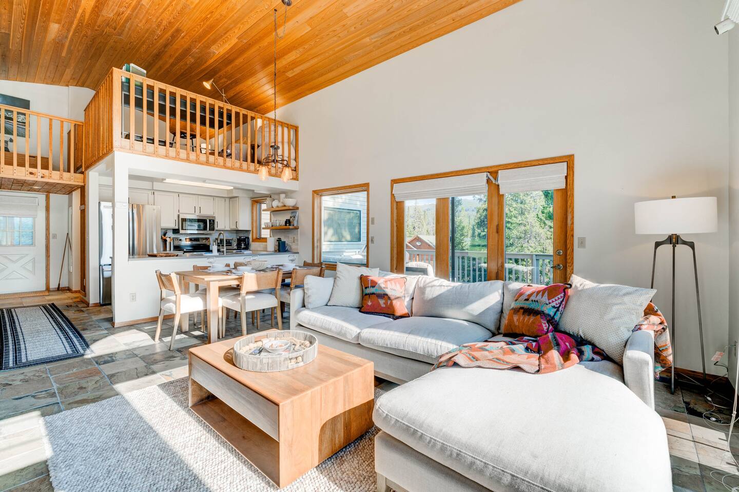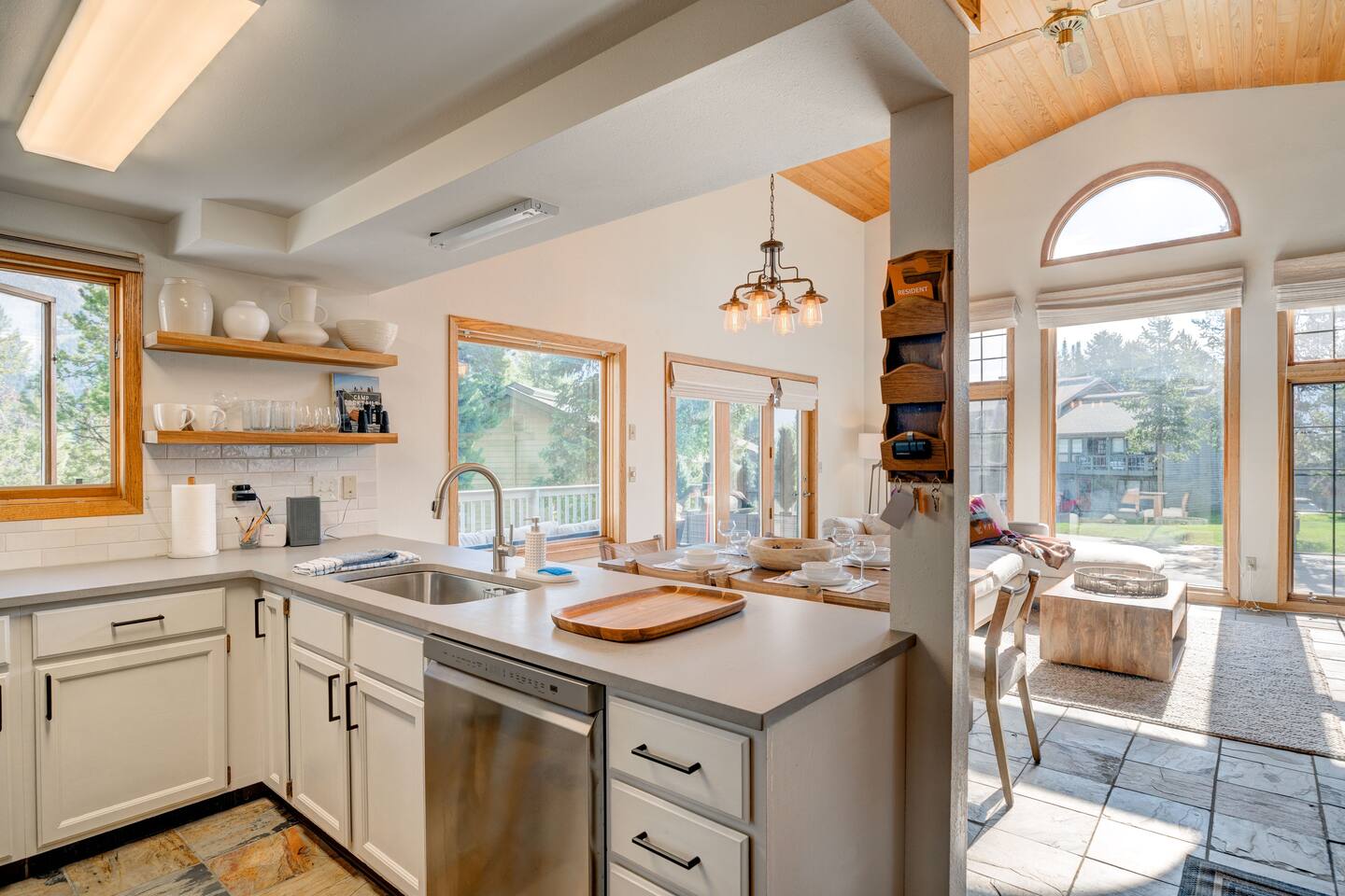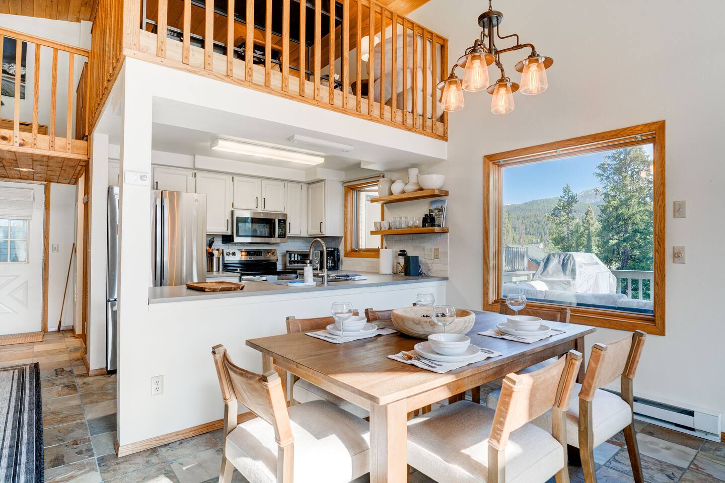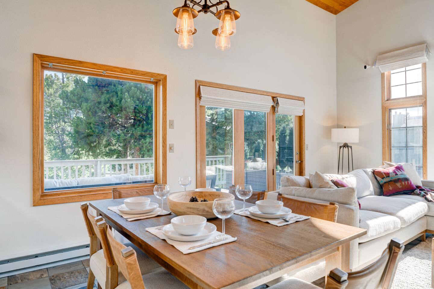 ✔ Large windows, high ceilings + charming mountain décor