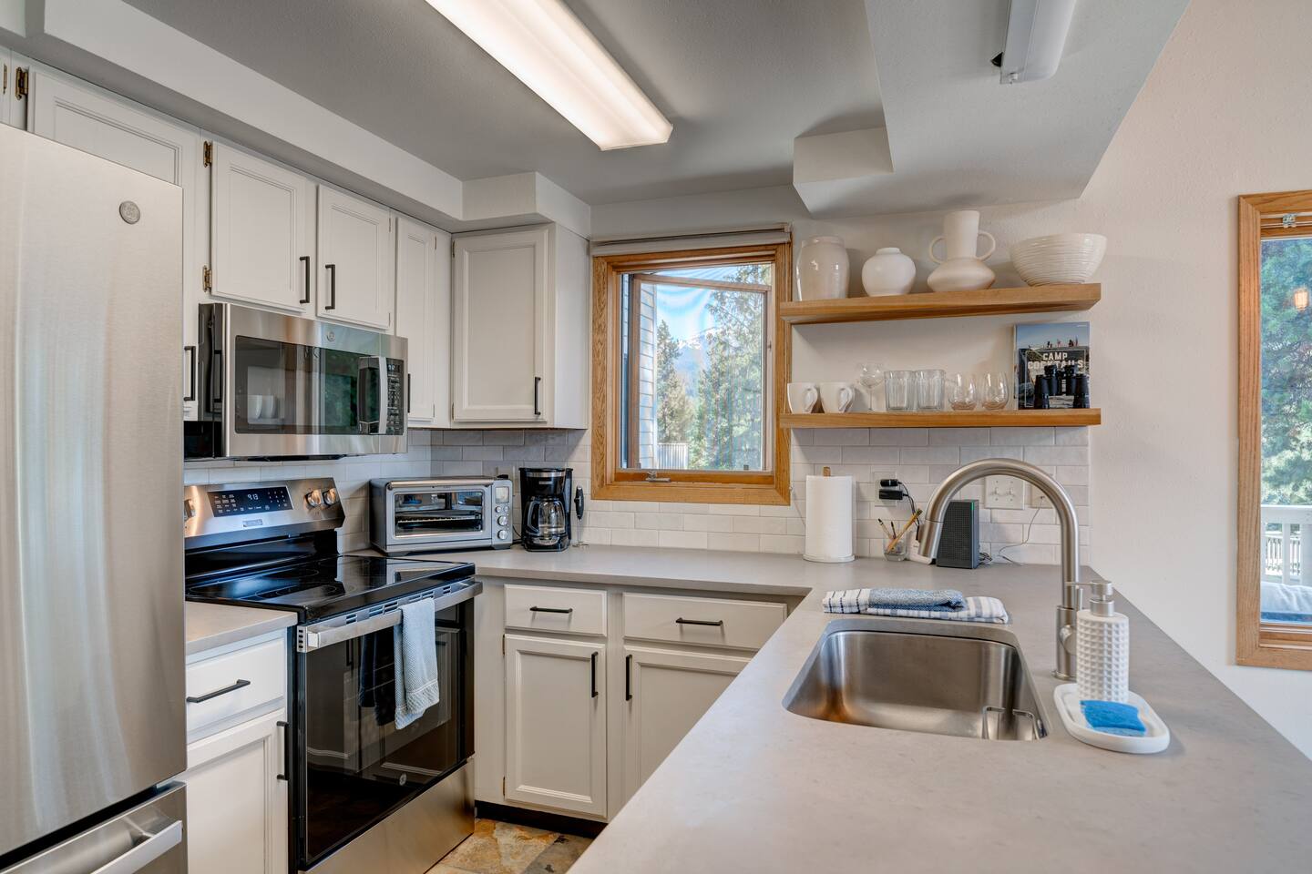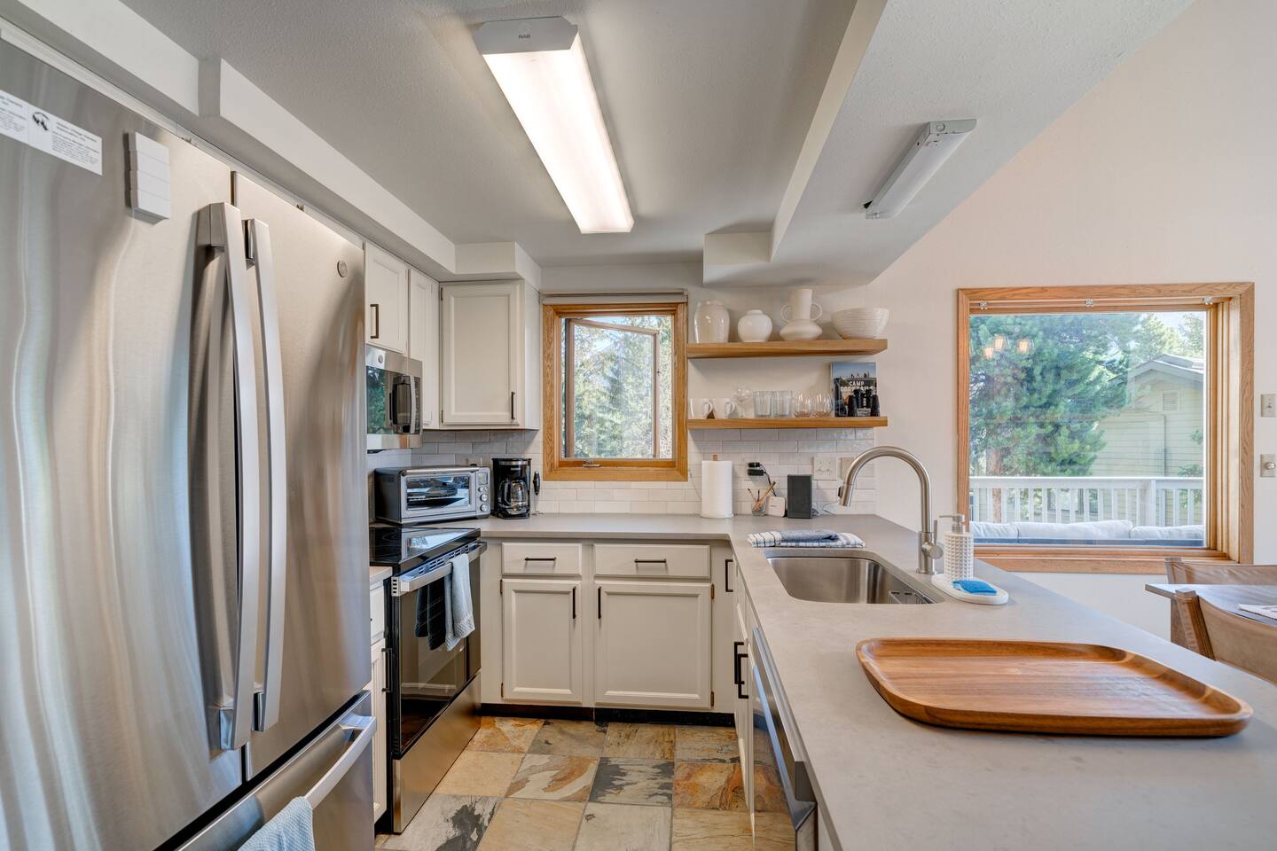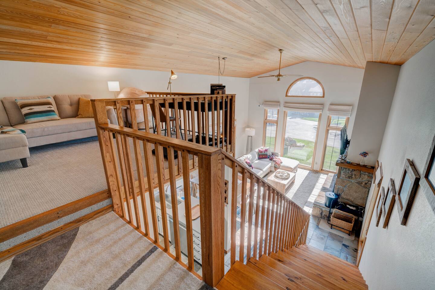 ✔ Large windows, high ceilings + charming mountain décor