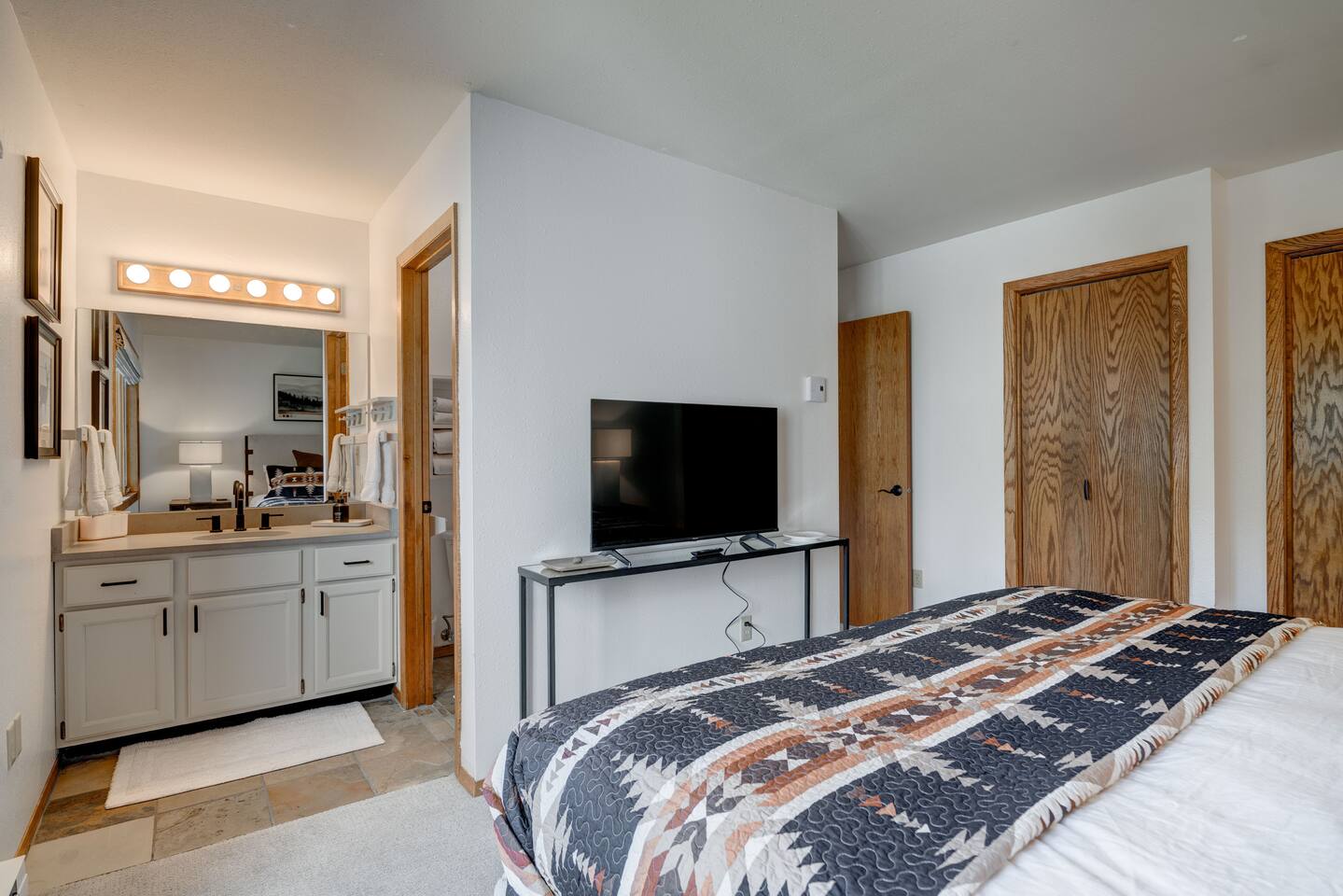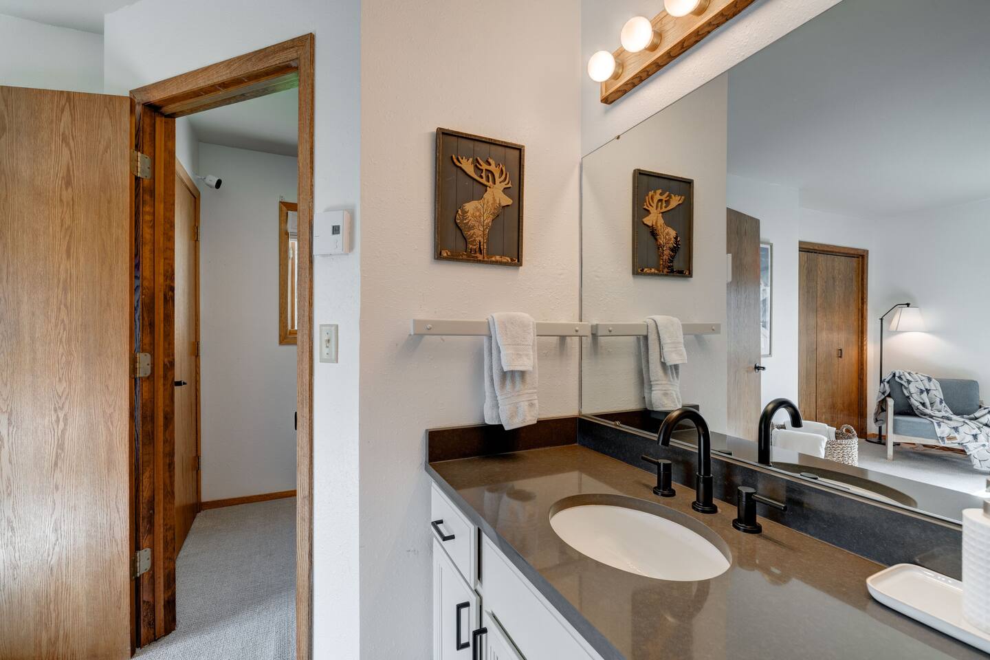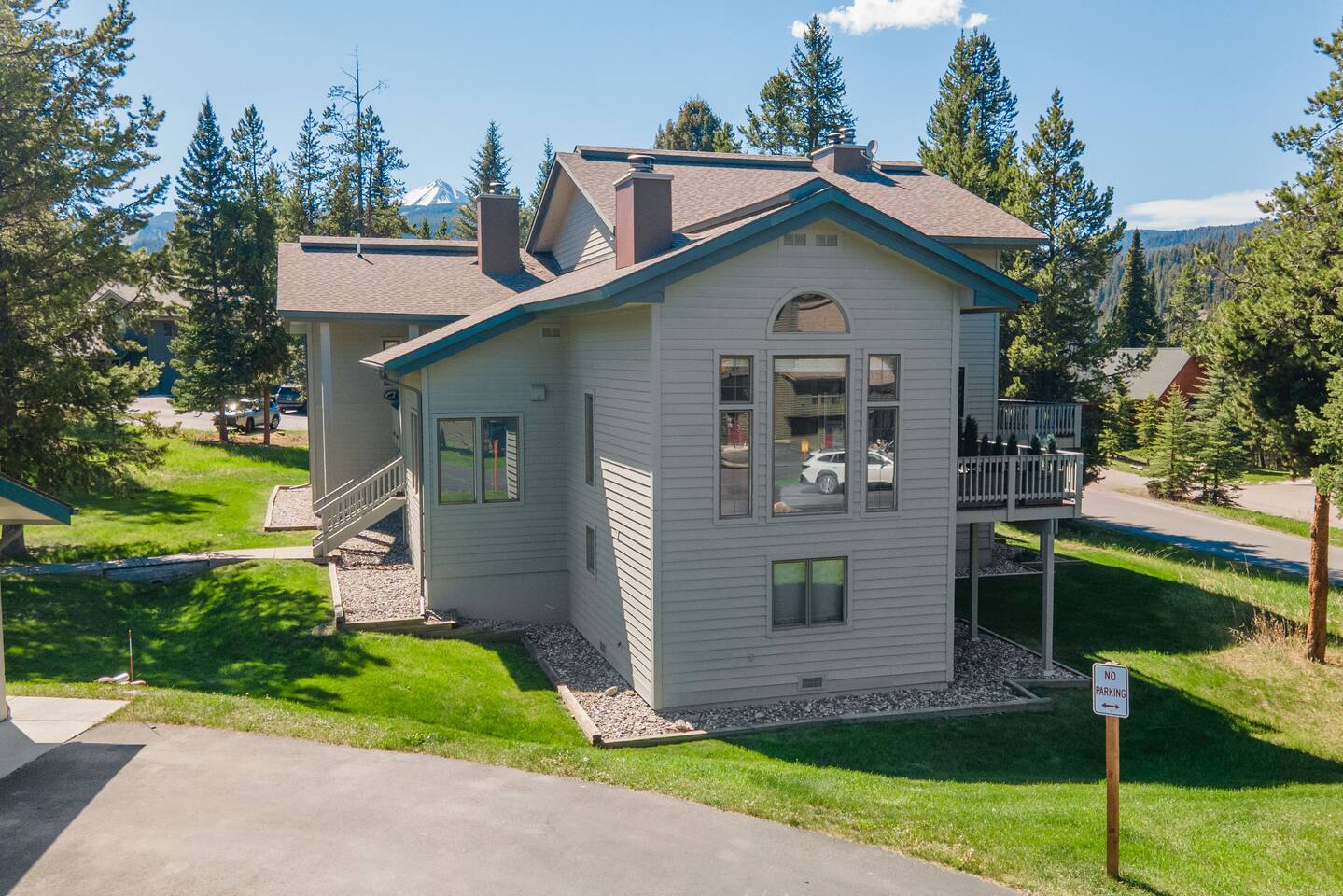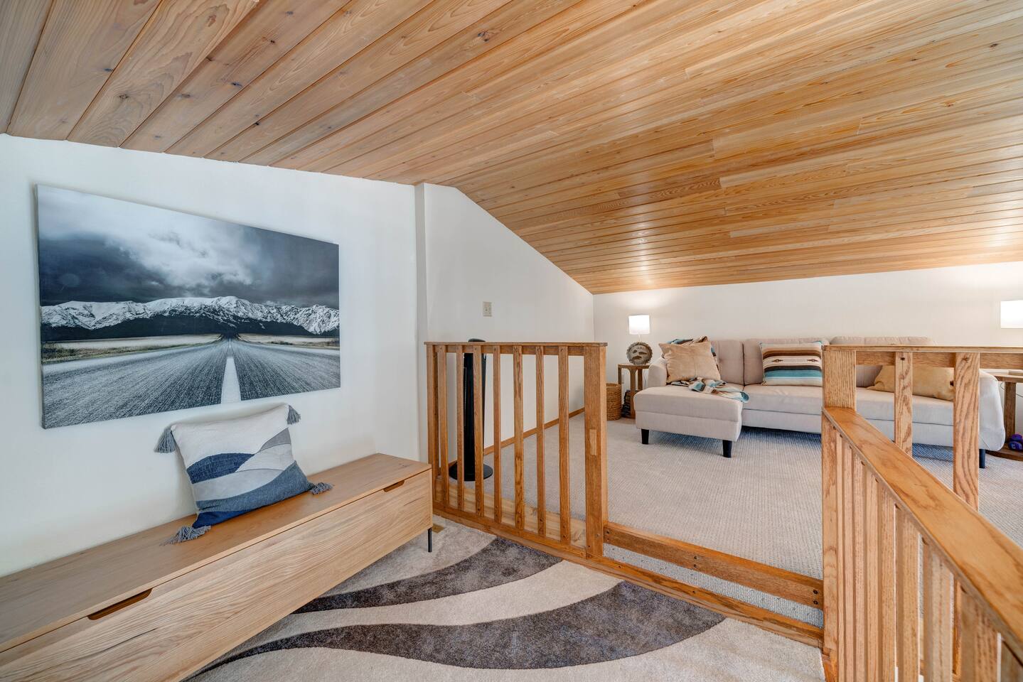 ✔ Large windows, high ceilings + charming mountain décor