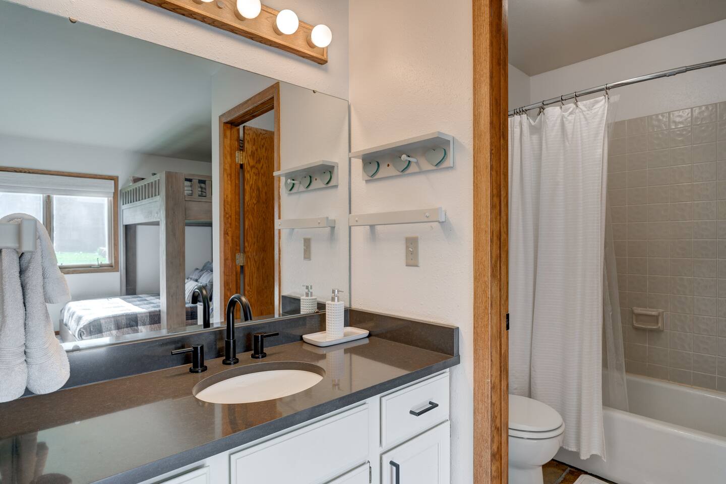 ✹Bedroom 2: Bunk with Queen-sized bed on bottom, Full-sized bed on top, dresser, ensuite bathroom