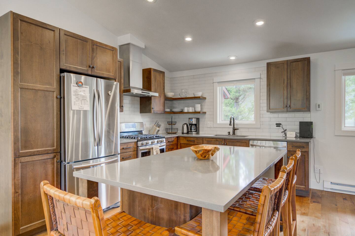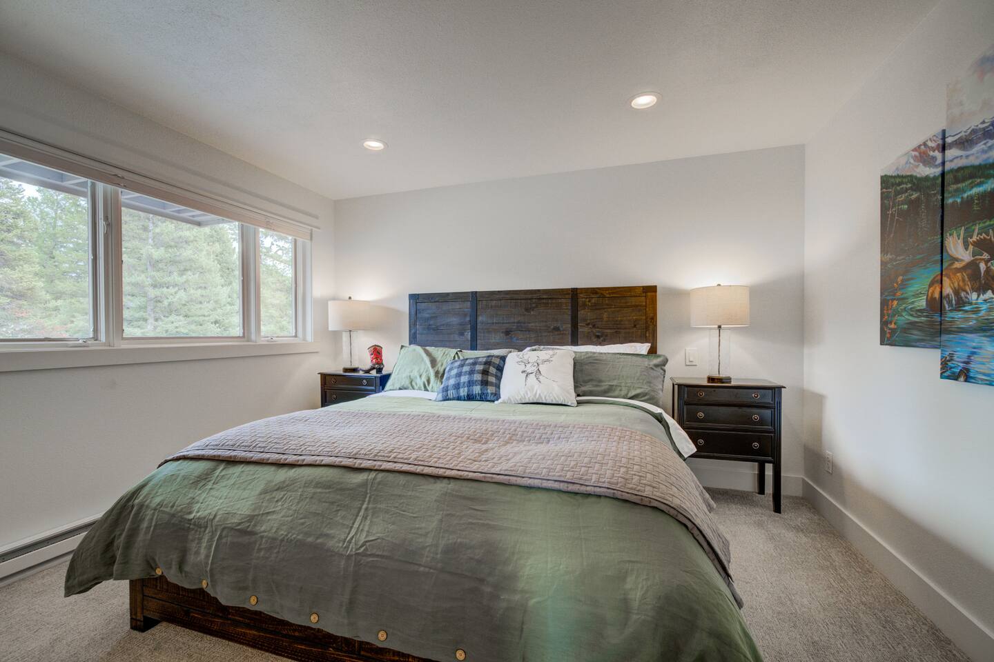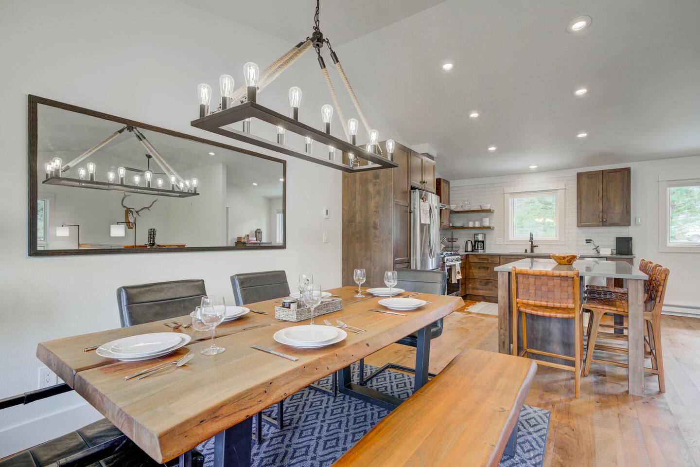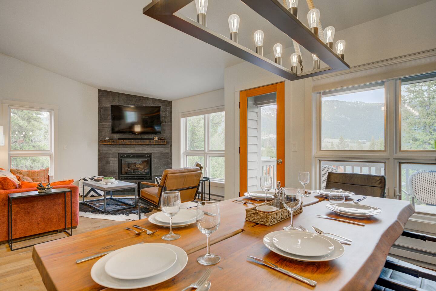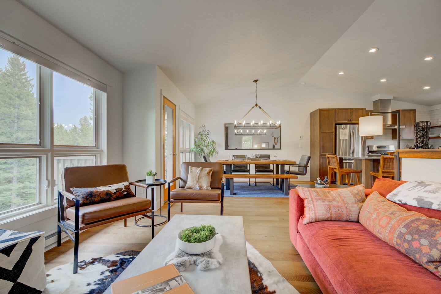 ✔ Large windows, high ceilings + charming mountain décor