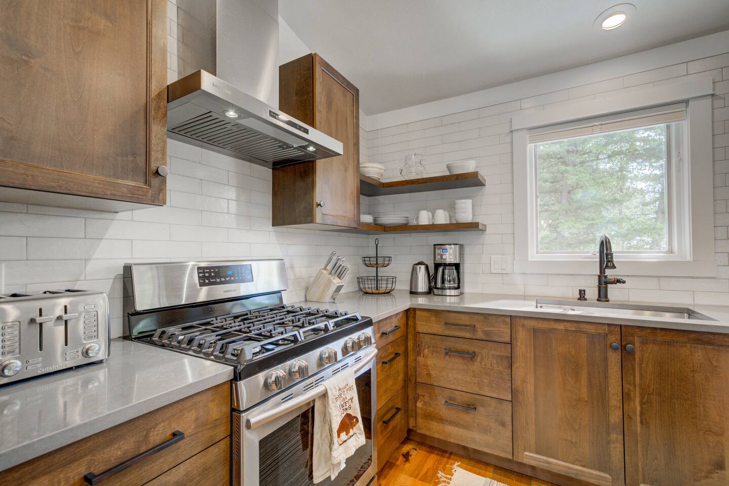 ✔ Stove, oven, dishwasher, microwave